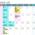 2026年2月の営業日カレンダーです。